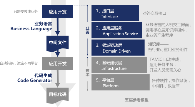 以业务驱动的方式完成业务应用开发,充分利用TAMIC平台提供的重用性和技术封装。TAMIC平台的业务语言是最贴近真实业务的开发语言。在TAMIC上,利用业务语言,进行系统的设计,编写代码的工作则由TAMIC的编译器代为完成。